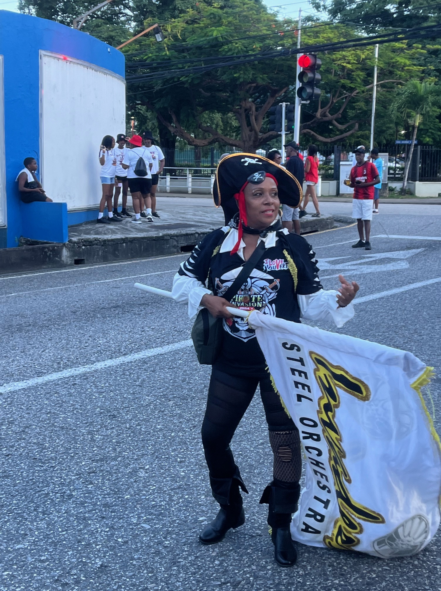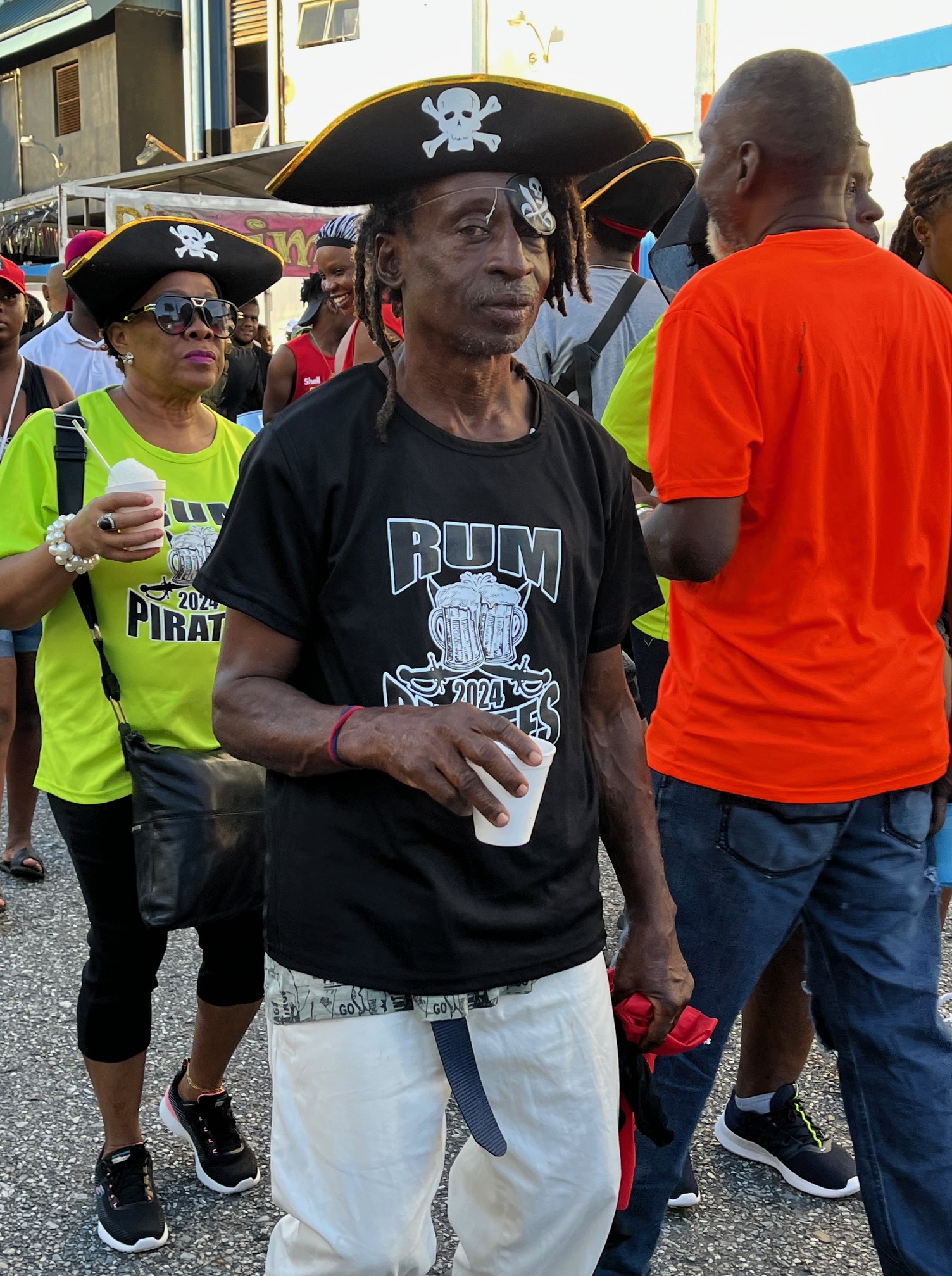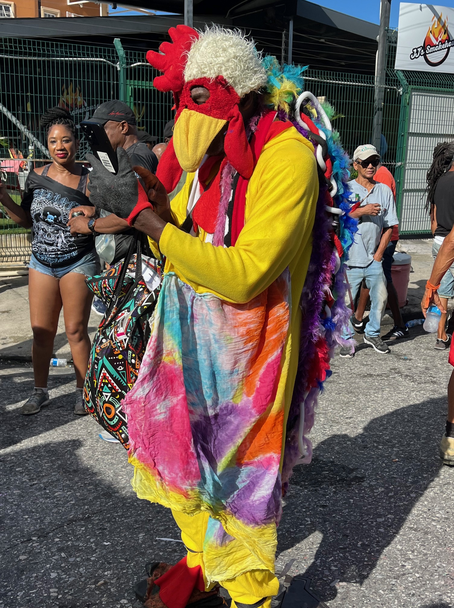 Behind the Invaders are the band followers “chipping” to the music. It looks effortless so I “jump-in” doing my best imitation of chipping although it feels more like clomping. At the end of the street I step away from the band and circle back to the next one that follows. I repeat this over and over again behind each band that follows, until I have the “Chipping” thing down. Now to try “Wining”- or maybe that is best left for another day. I am ready for some liming.