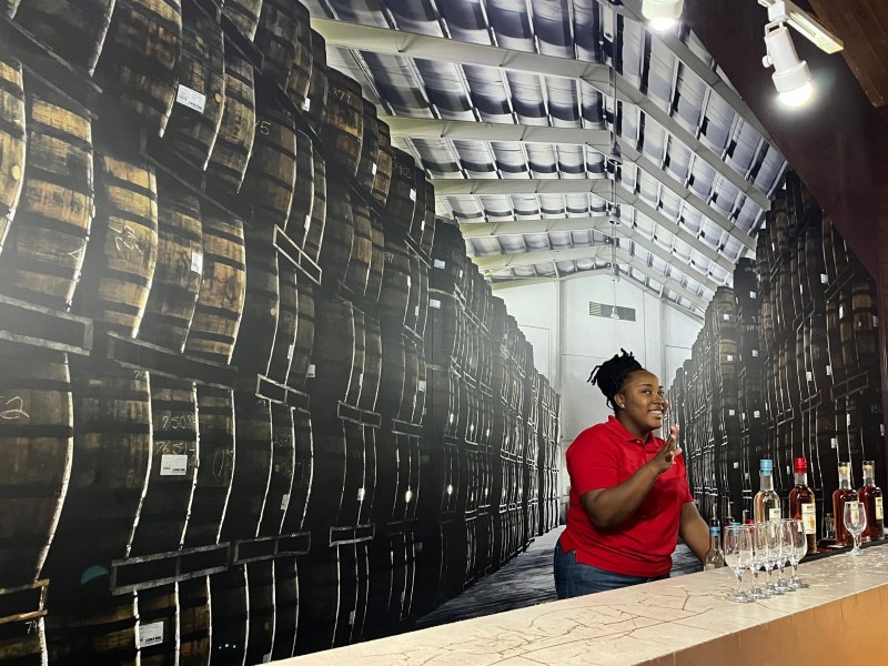 The tour guide speaks eloquently about rum