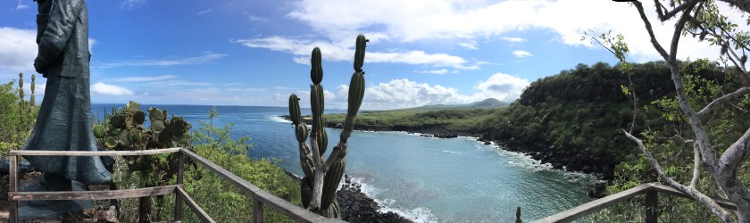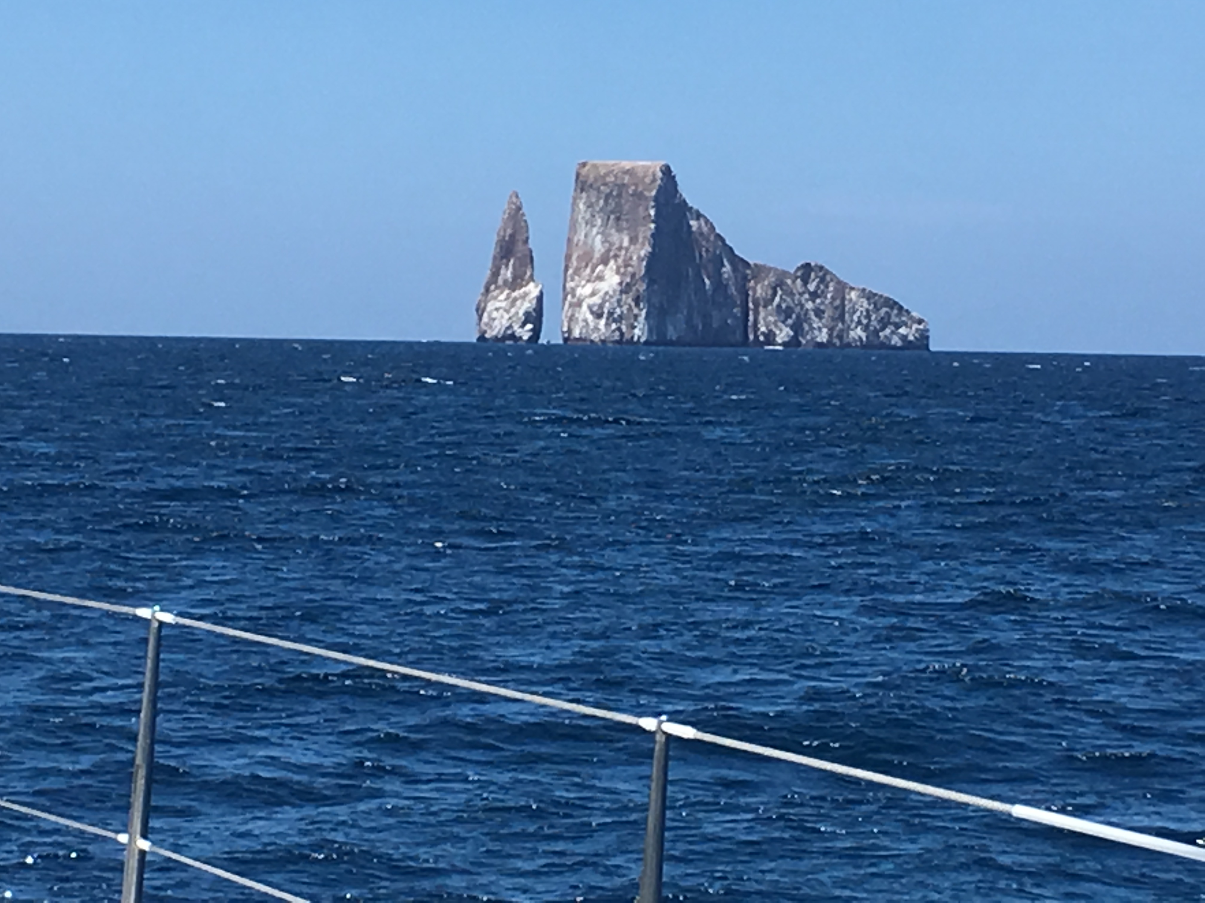 We arrived at San Cristobal around noon. San Cristobal is named after the patron saint of seafarers- St. Christoper and Puerto Baquerizo Moreno is the main town on the island. We passed Kicker Rock, an iconic rock tower(s) rising vertically above the sea. We would be visiting this landmark a few days later. We anchored in the bay facing the town. Some of the boats in the flotilla, with big powerful engines that had mostly motored their way were already here. The ocean along the equator in this part of the world has virtually no wind and that is described as the Doldrums. If we had relied solely on sails it would have taken us 20 days instead of 5.