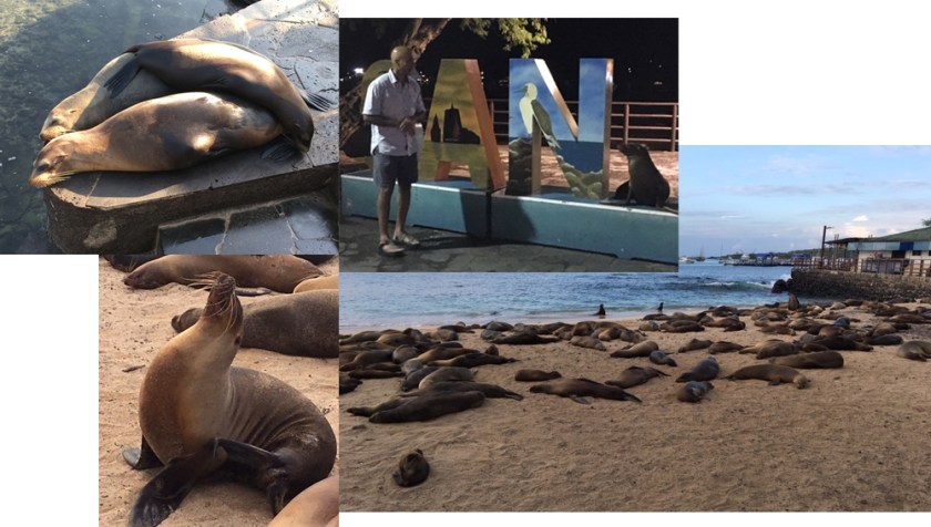 The only way to get to shore is to call a water taxi on the radio. It is 1 USD per person. They pull up next to the boat and you hop in and off you go to the town docks. When you disembark, you must be careful not to step on a sleeping sea lion. That can be terribly injurious to your well-being. There are sea lions everywhere- on the pier, on the beaches, on rocks, on the boardwalks, on the streets, on monument signs- you get the idea! They climb on board boats, and anything else that floats in the water.