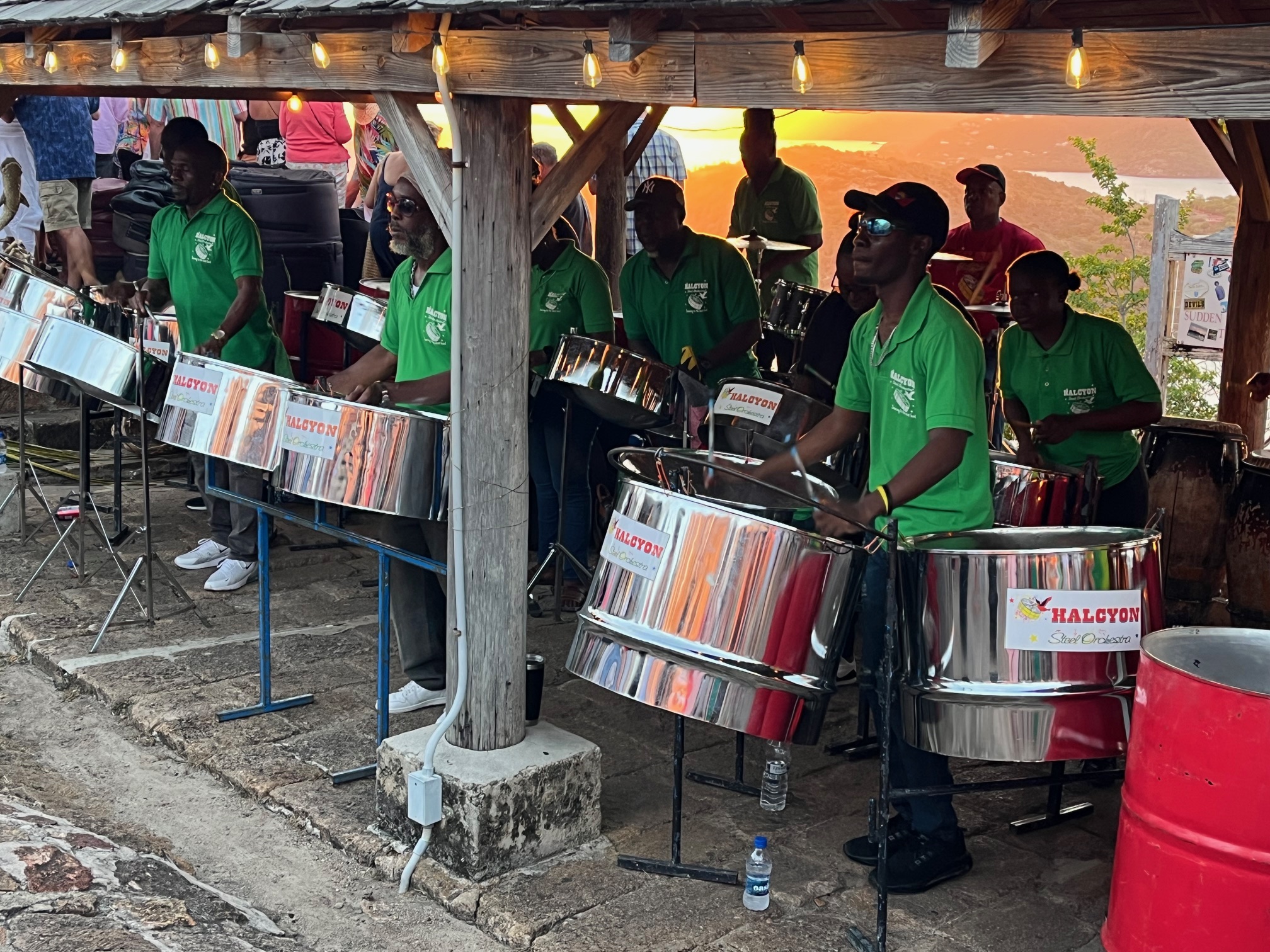 Live steel pan and local jazz/reggae bands